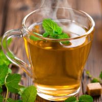 Te Verde con azúcar moreno y hojas de hierbabuena fresca.